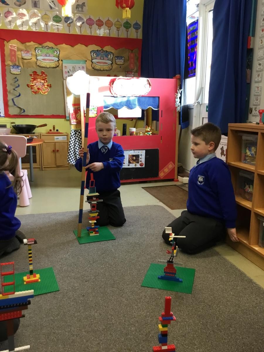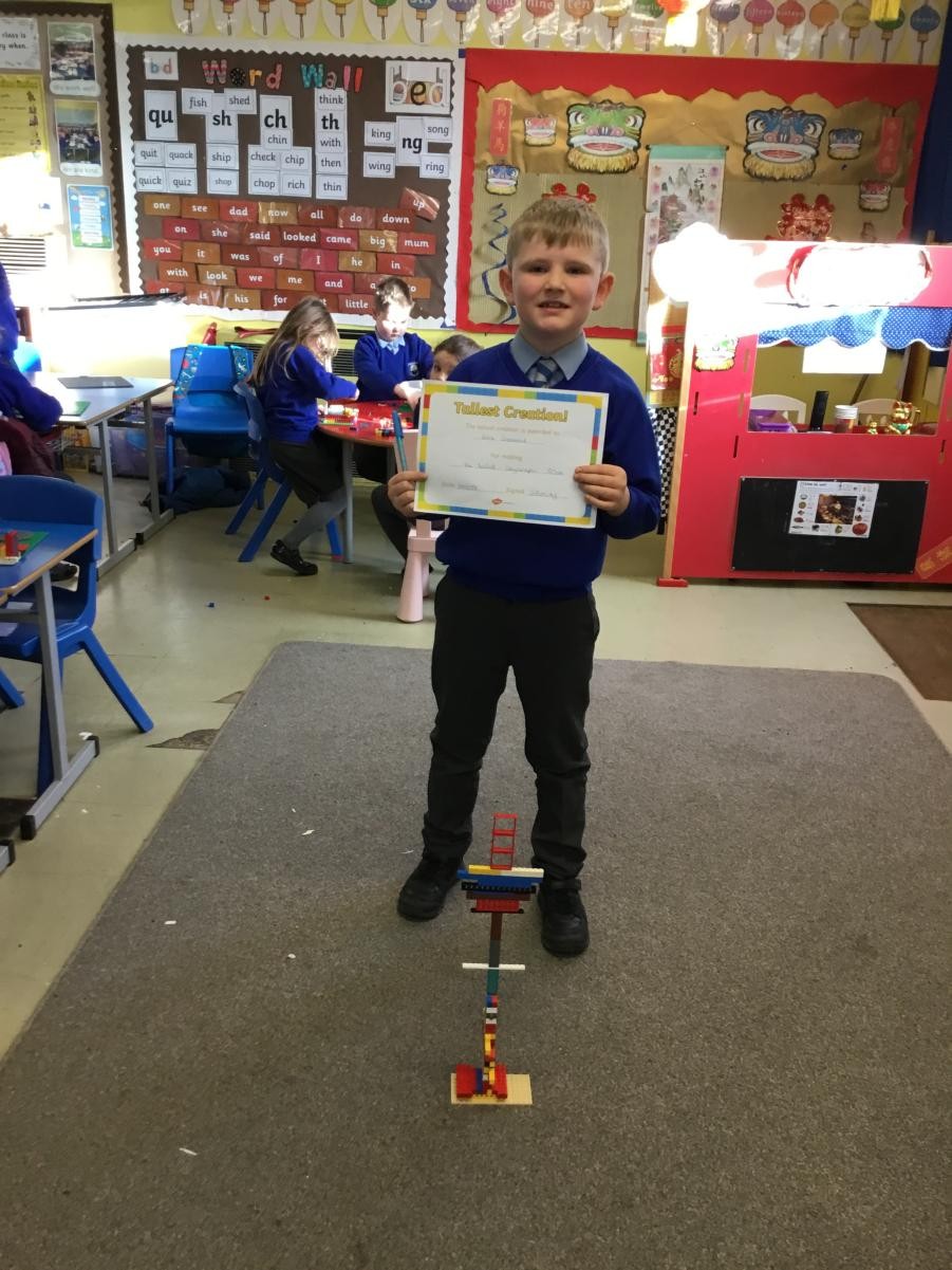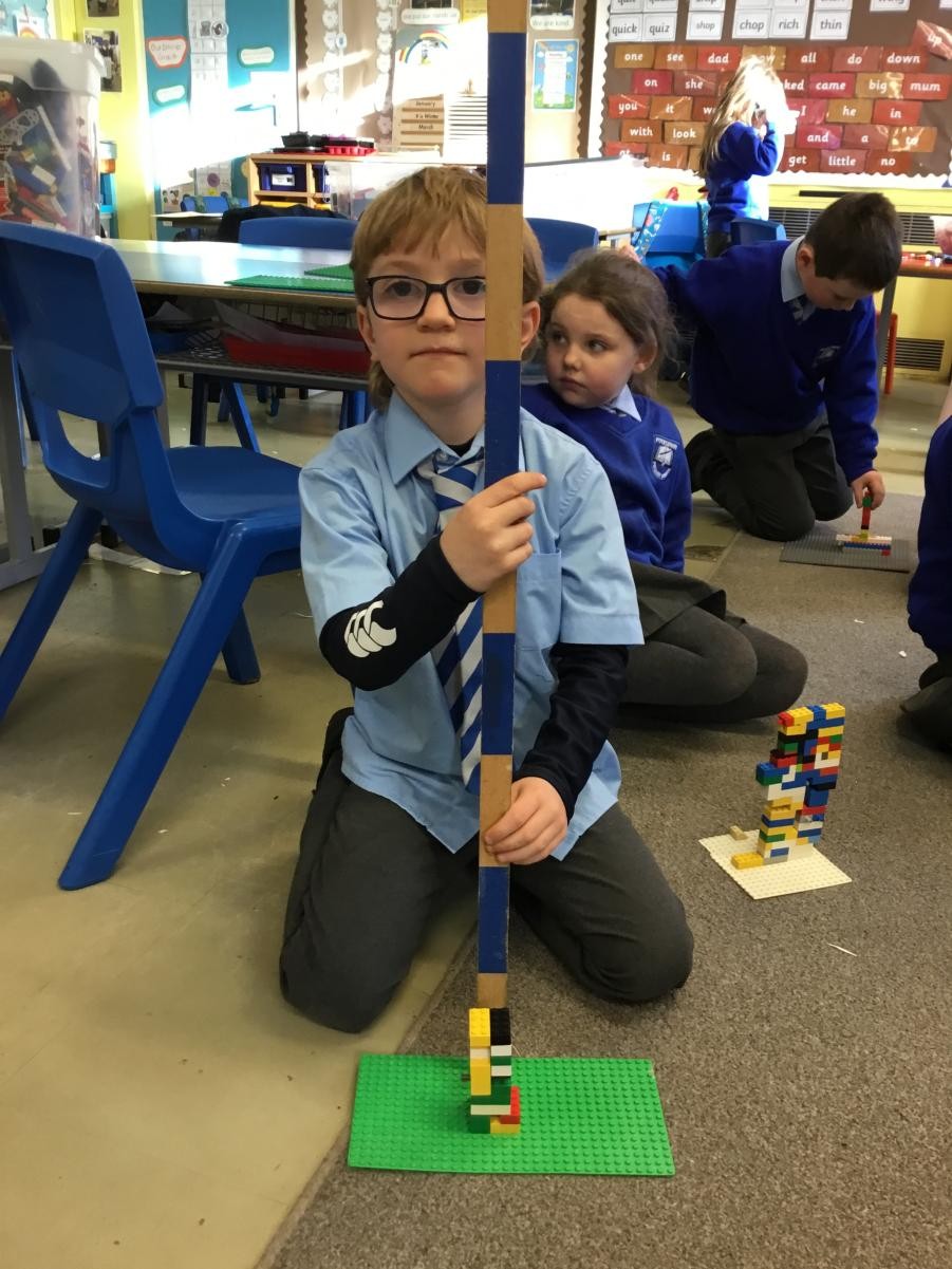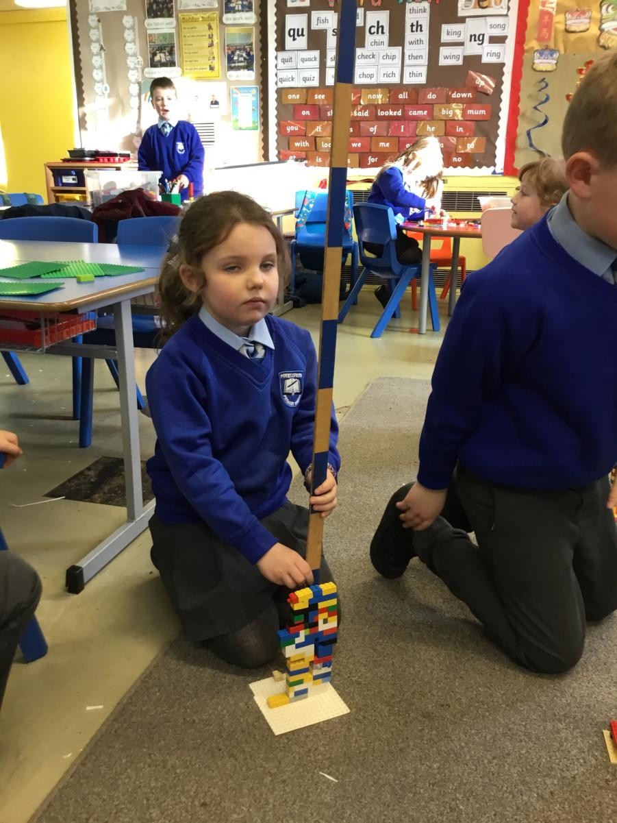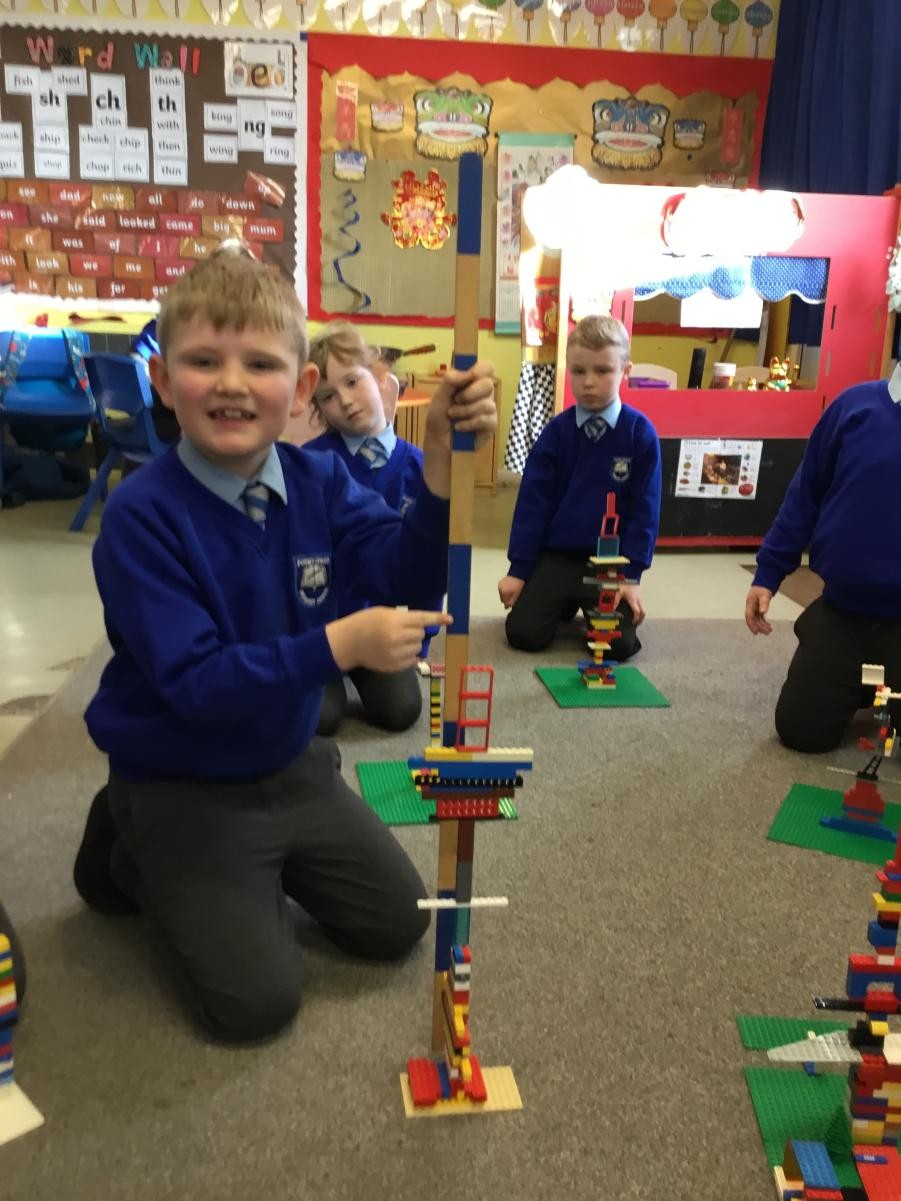 Welcome to P1-3 Lego Club. We are going to undertake a challenge each week. This week's challenge was to make the tallest creation. Check out our photos to see how we got on!