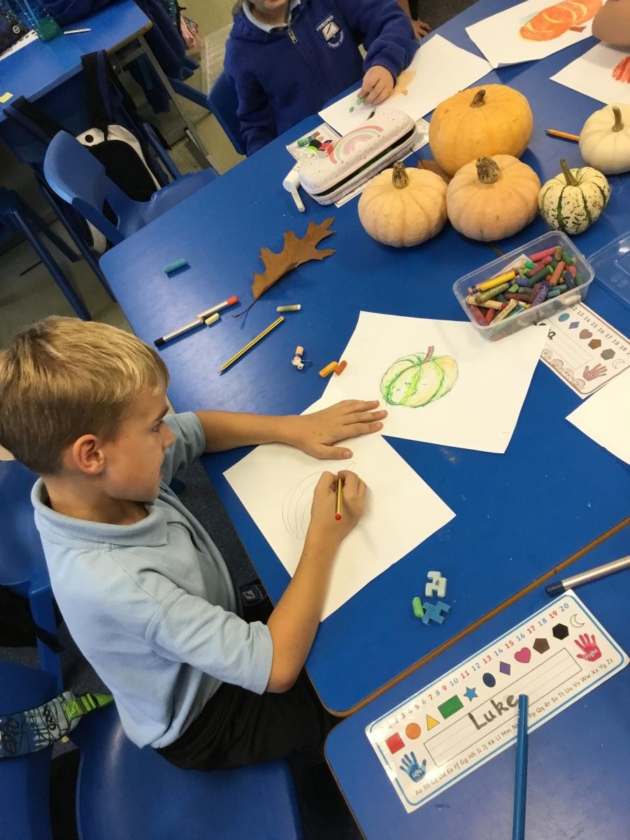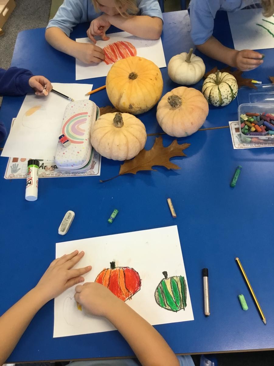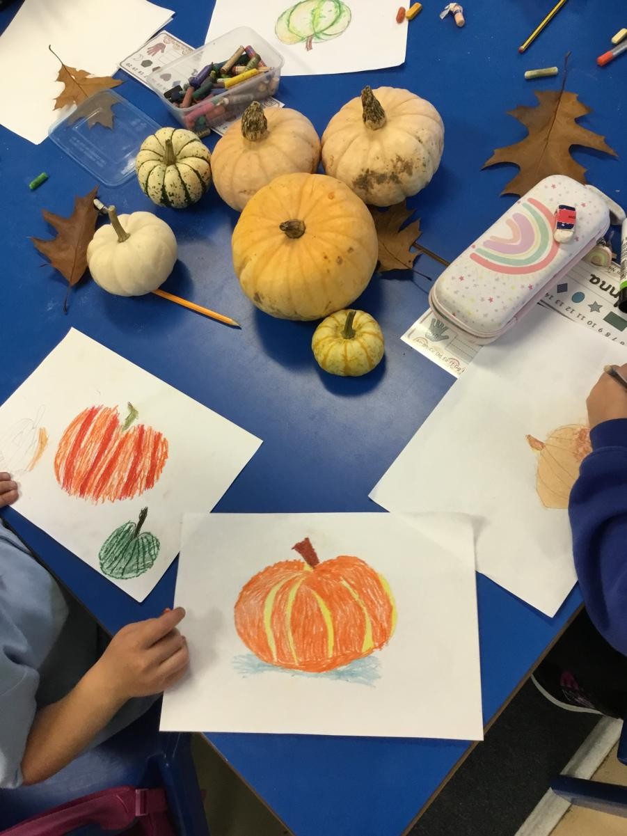 Today P3 enjoyed observational art as they drew what they saw when looking at our class pumpkins and gourds.
