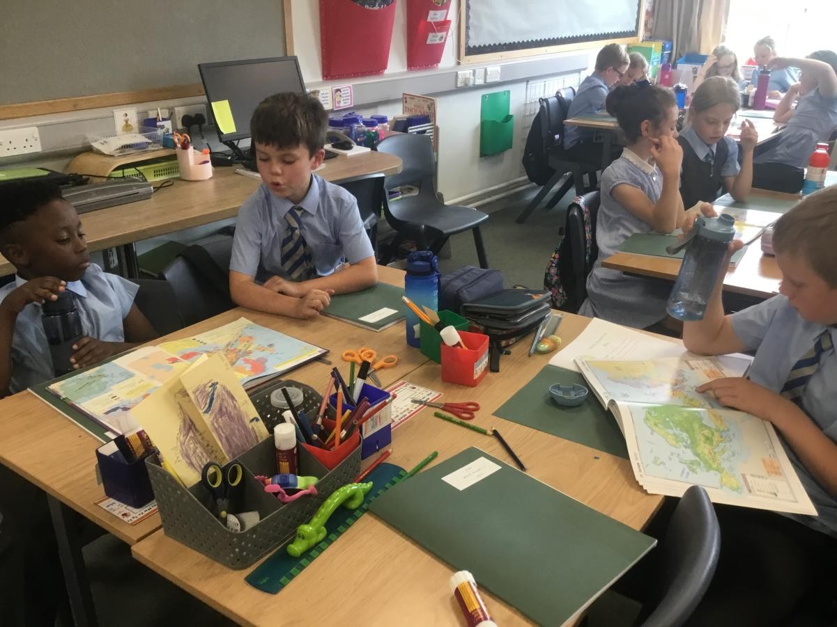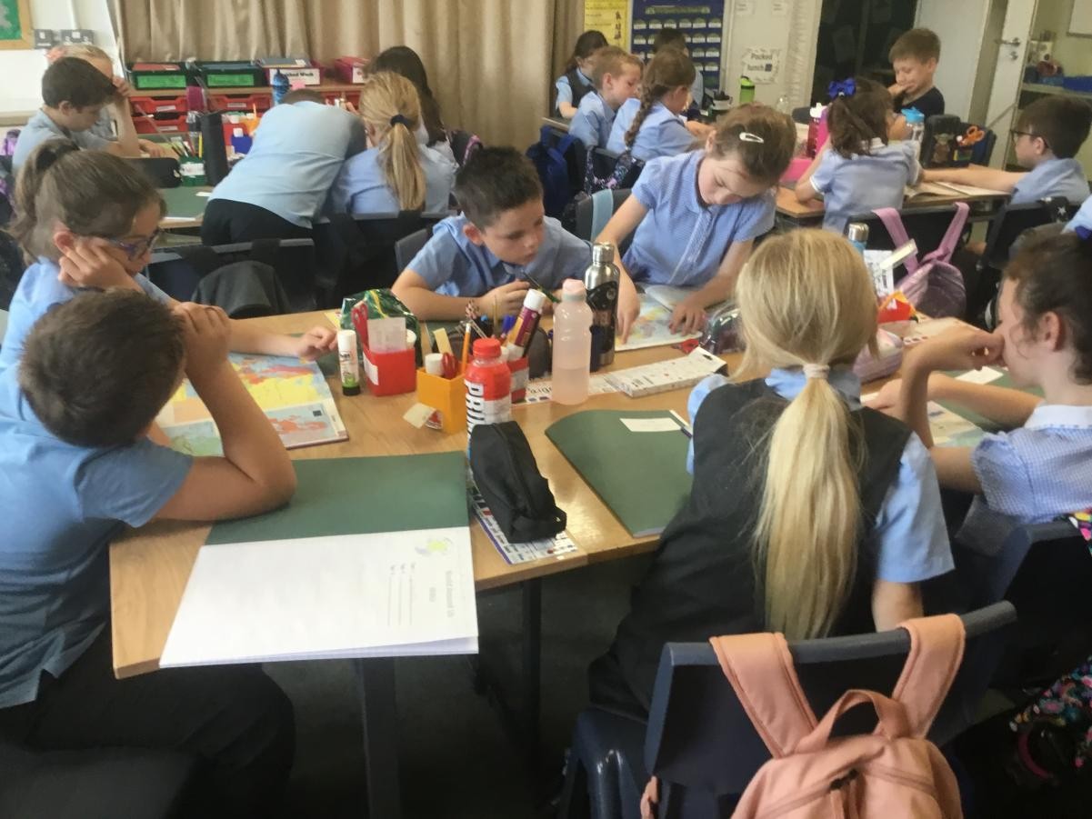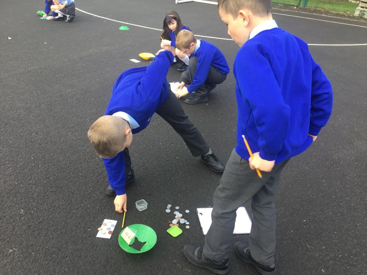 A little bit of what has been happening in class during September! Working with money making amounts both indoors and outside! Using the atlases to chart the journey made by the Vikings travelling from their homeland in Scandanavia to create settlements across the United Kingdom!