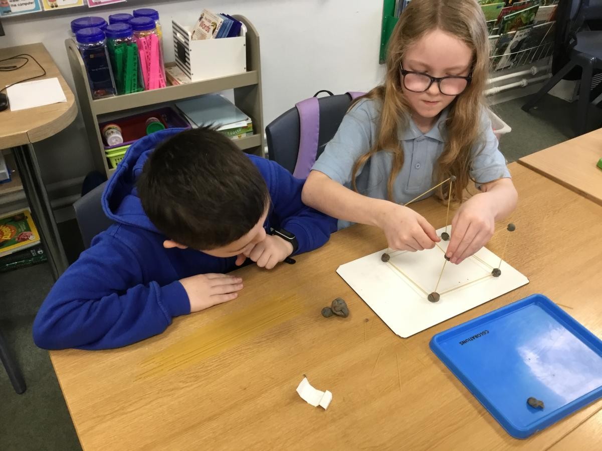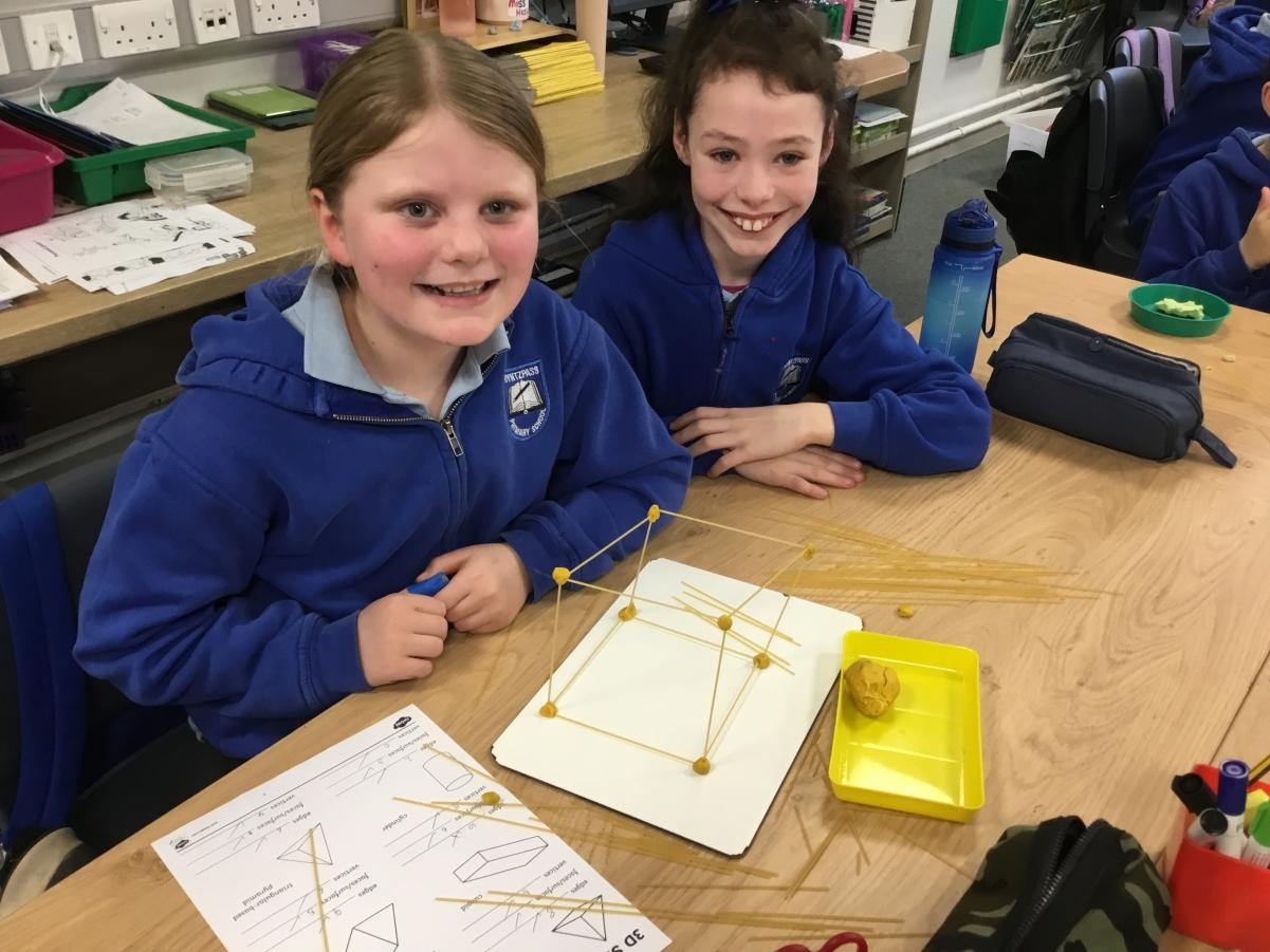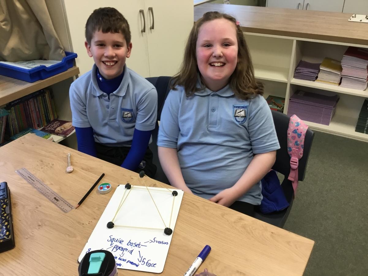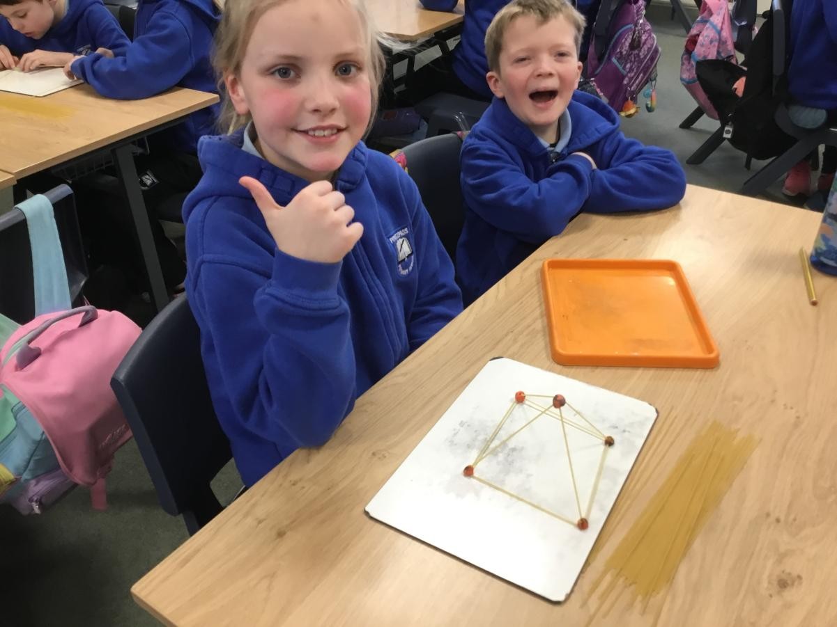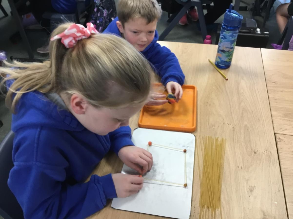 P5/6 have been exploring 3D shapes. We talked about the properties of a range of shapes using words like face, vertices and edges. We then had a go constructing our own 3D shapes with a partner.