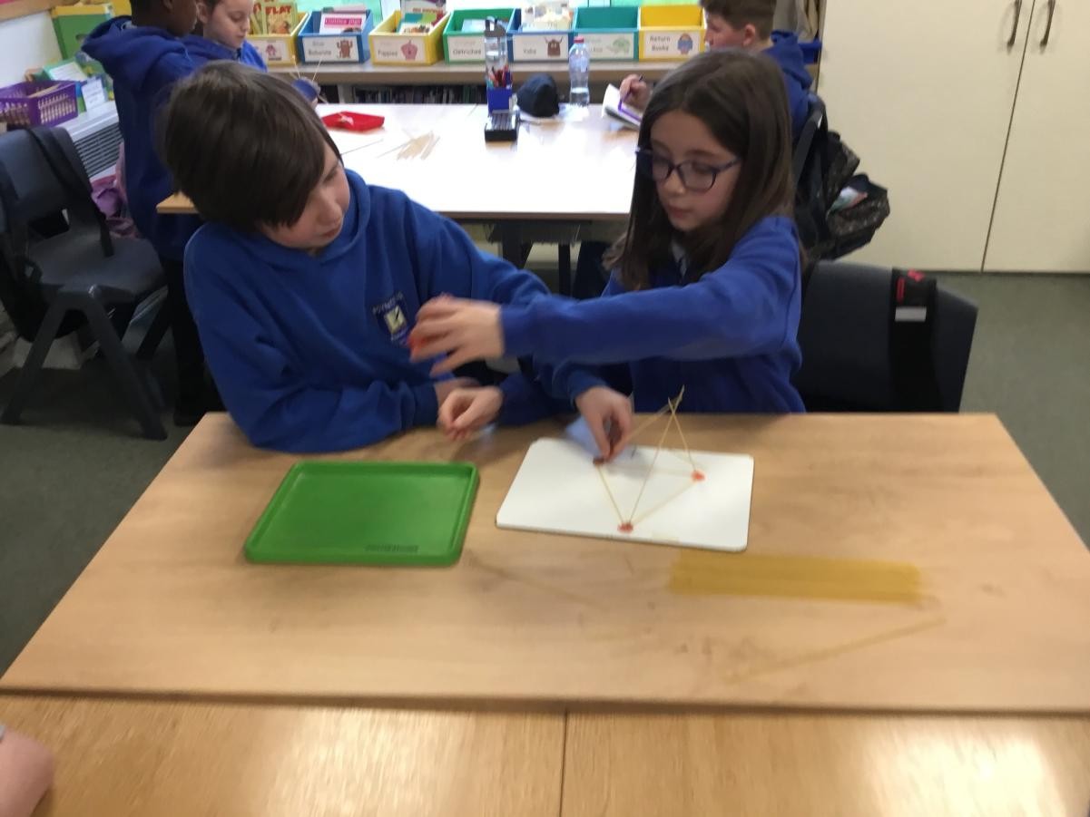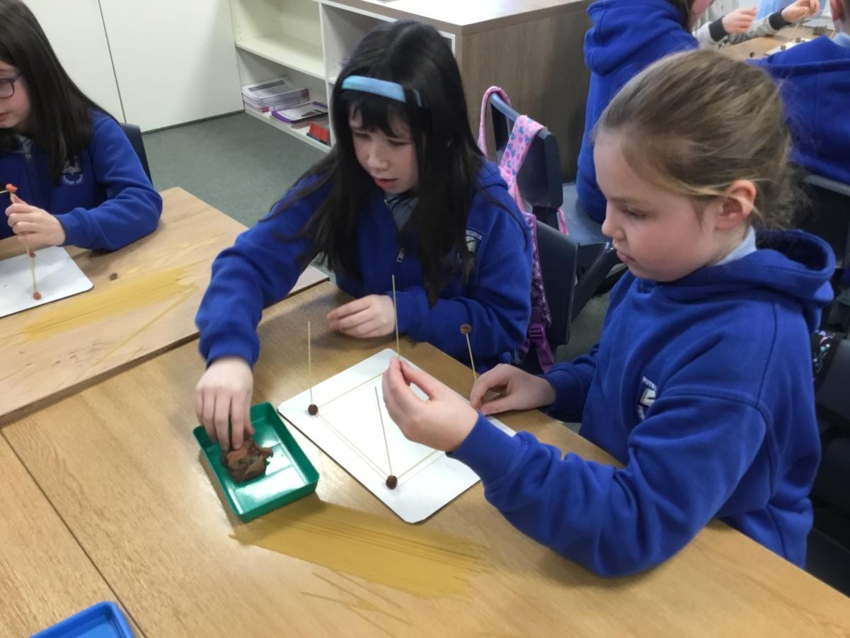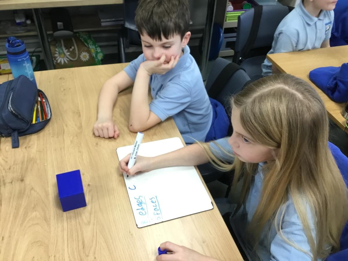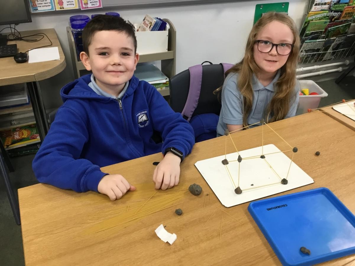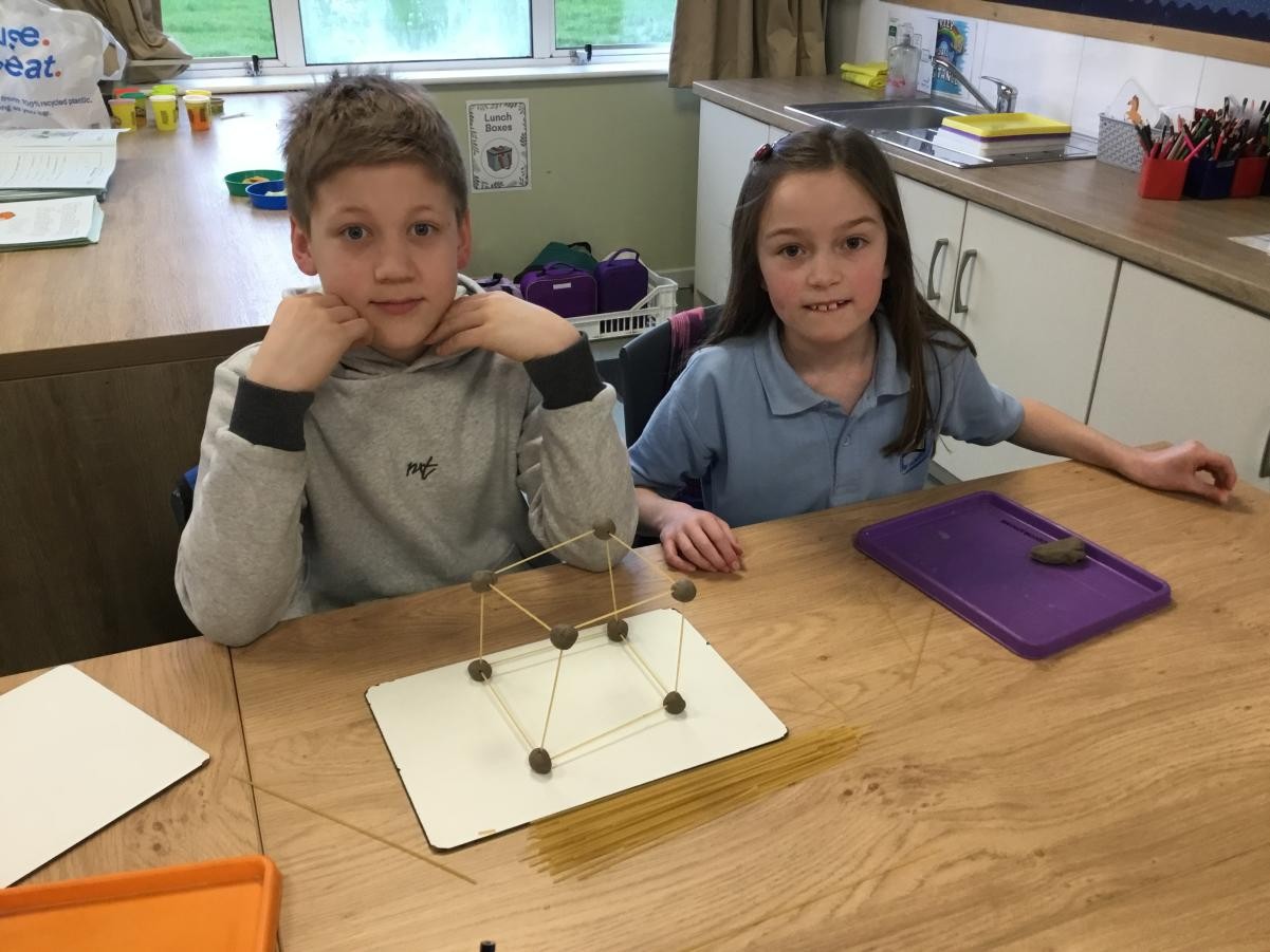 P5/6 have been exploring 3D shapes. We talked about the properties of a range of shapes using words like face, vertices and edges. We then had a go constructing our own 3D shapes with a partner.