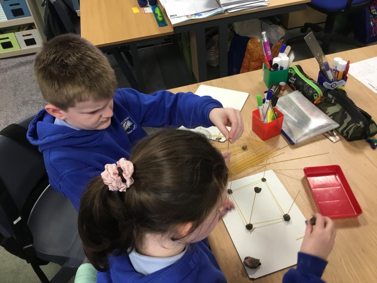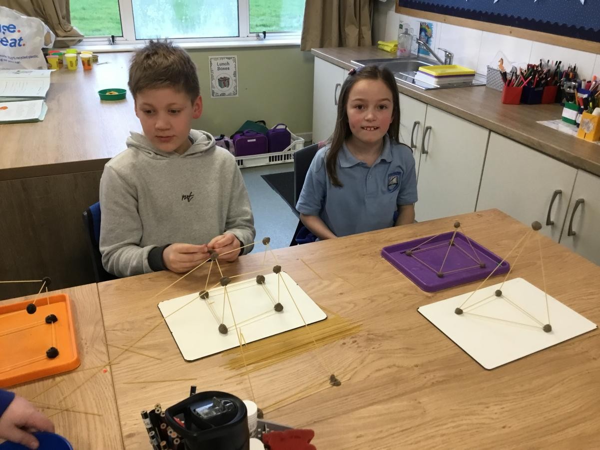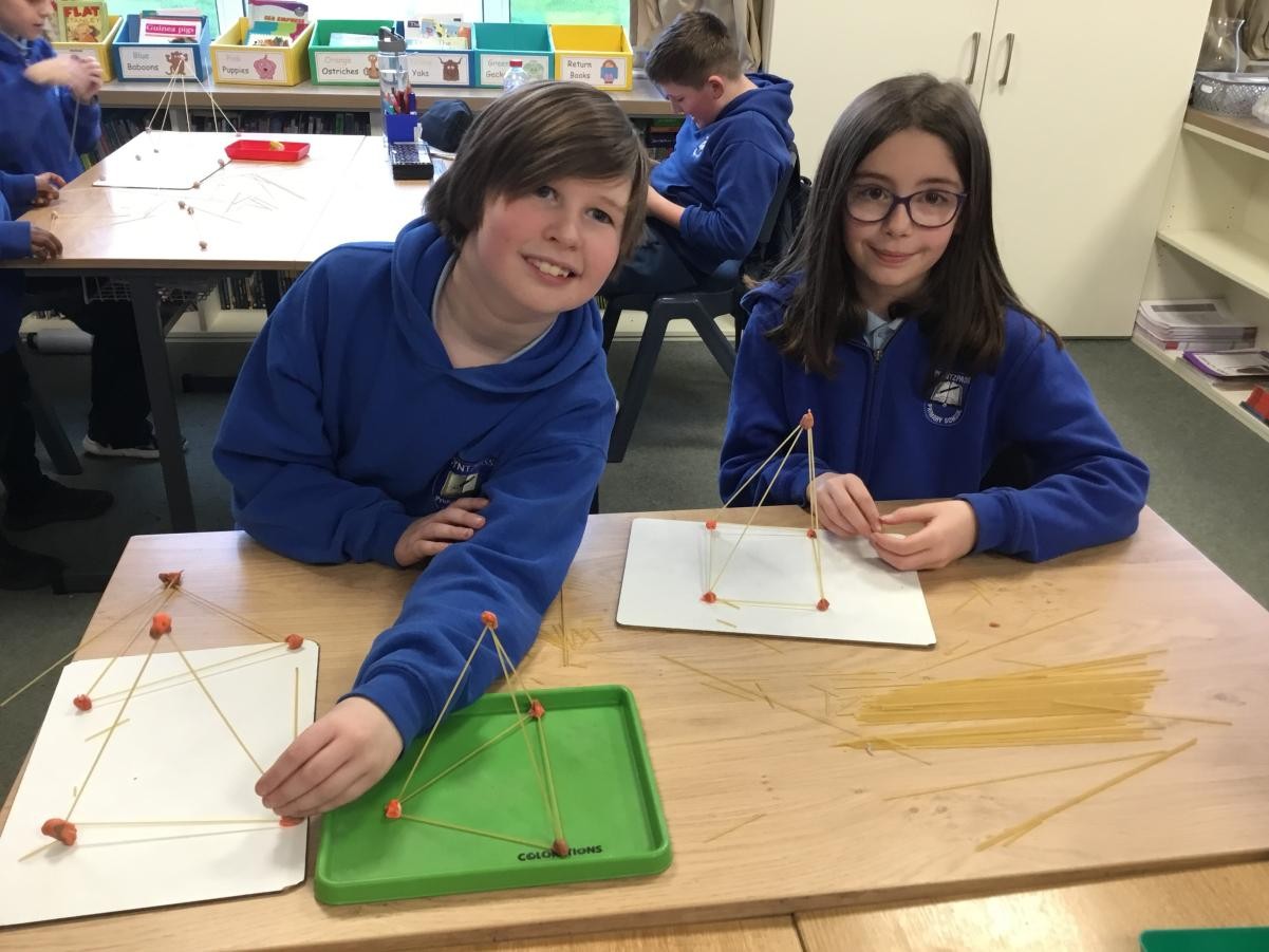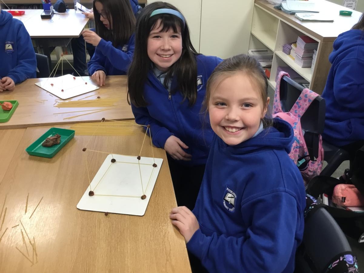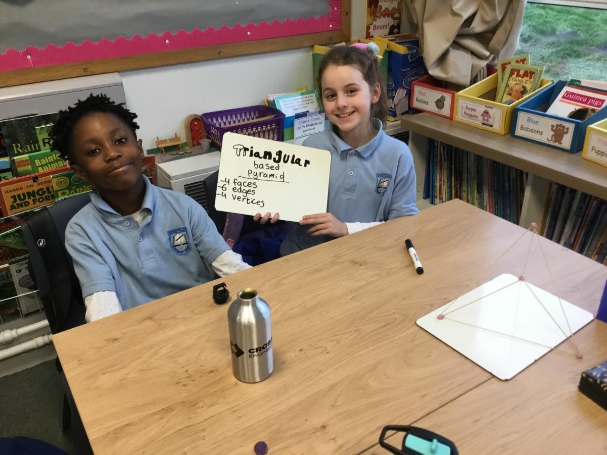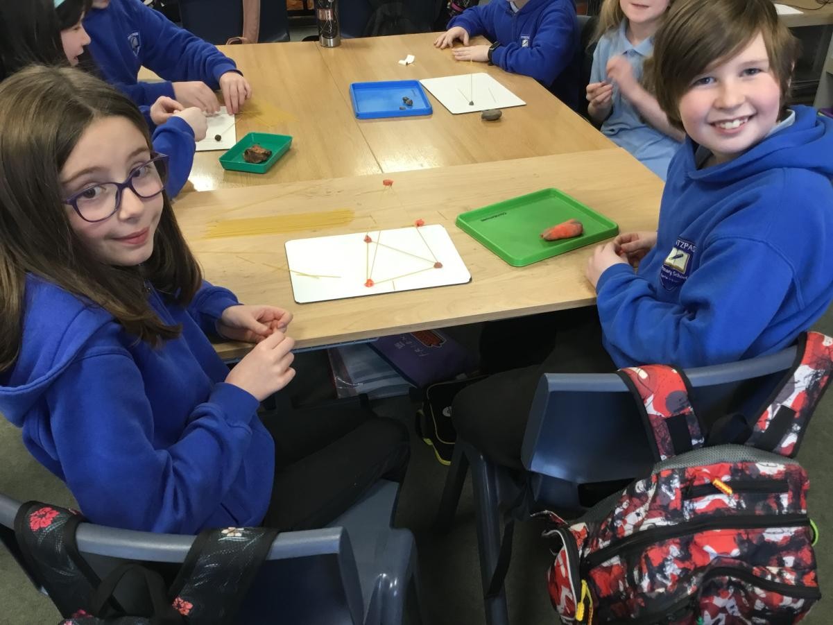 P5/6 have been exploring 3D shapes. We talked about the properties of a range of shapes using words like face, vertices and edges. We then had a go constructing our own 3D shapes with a partner.