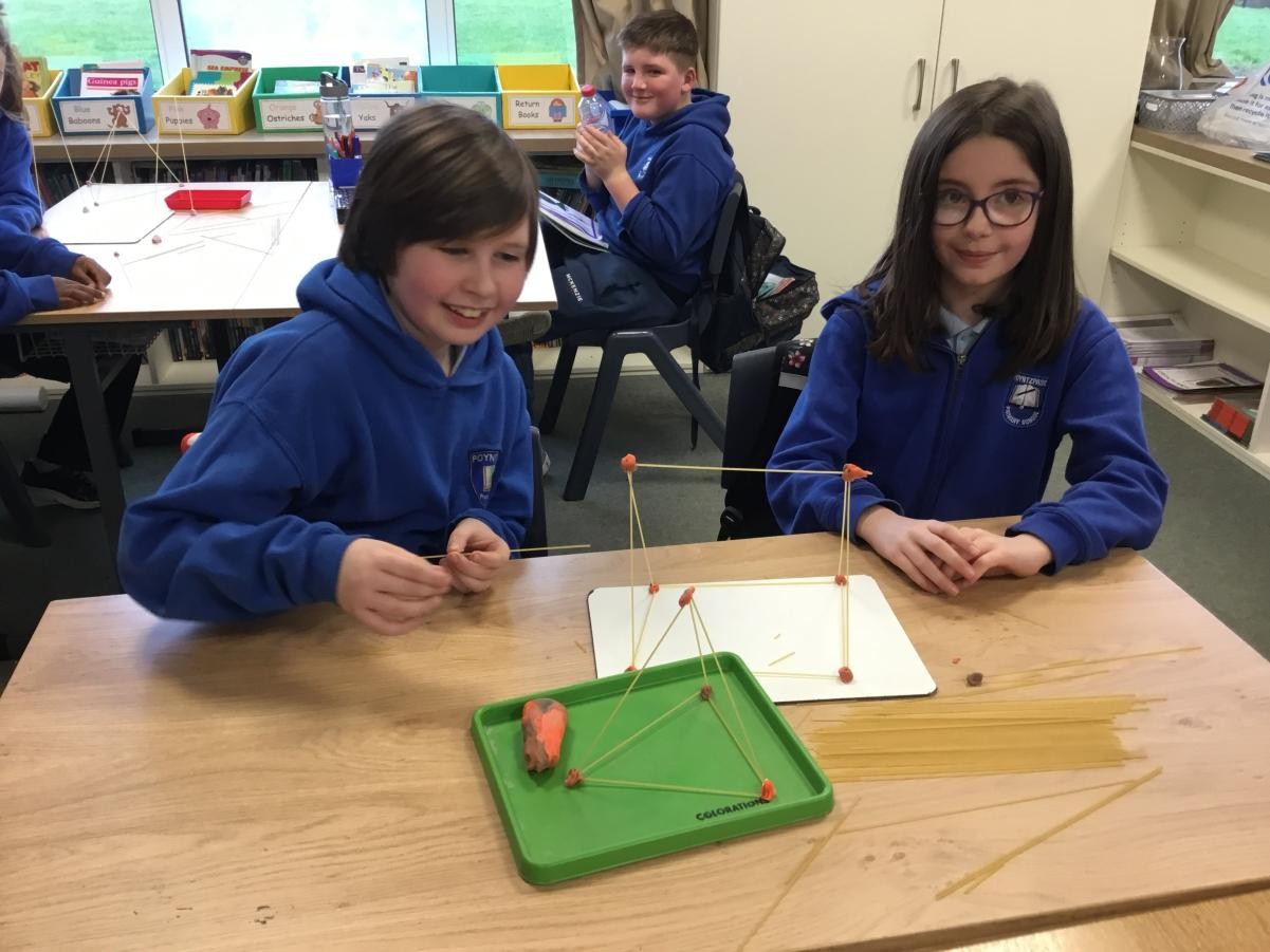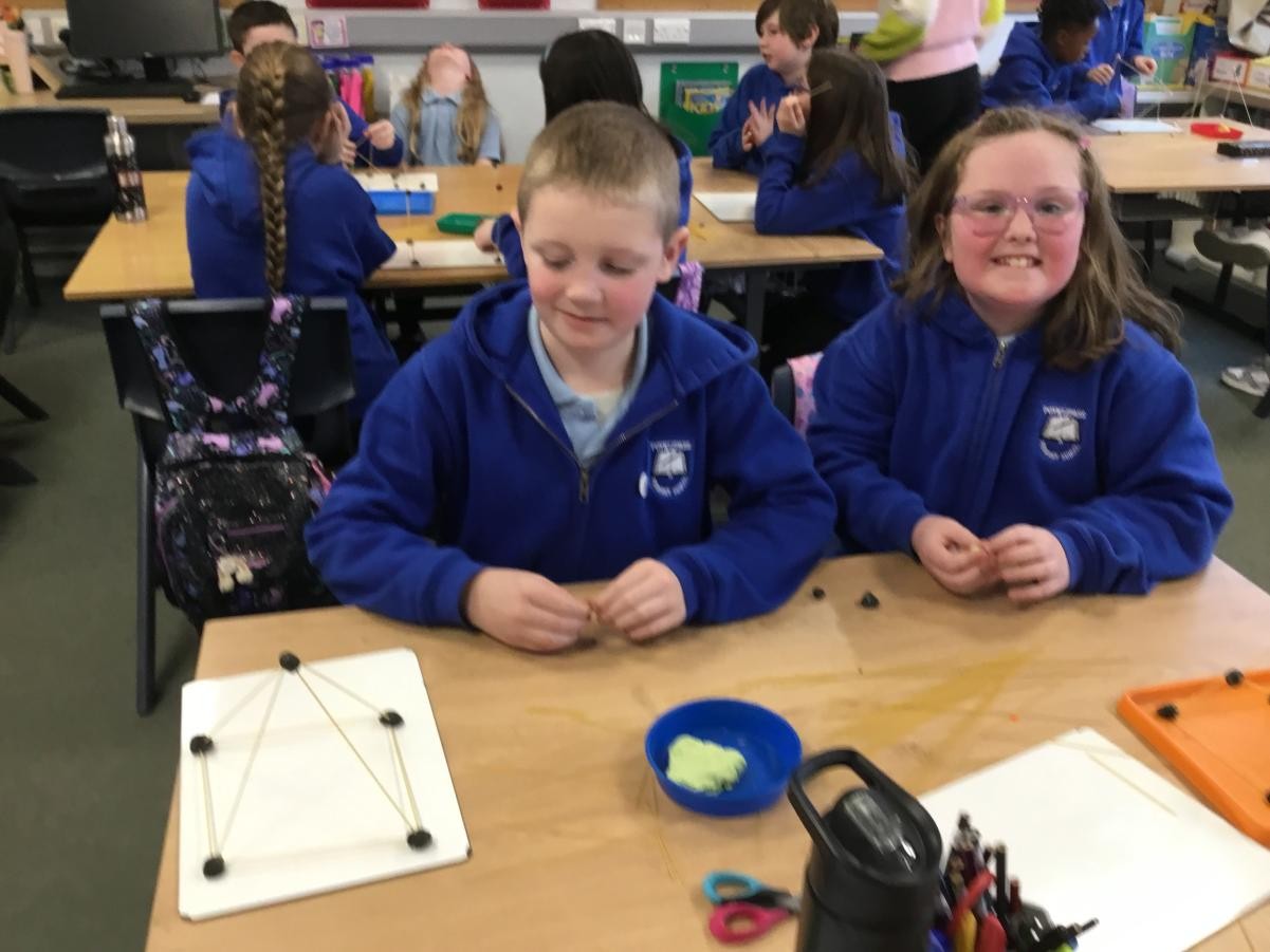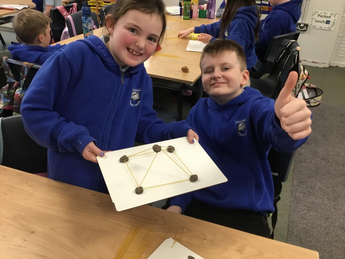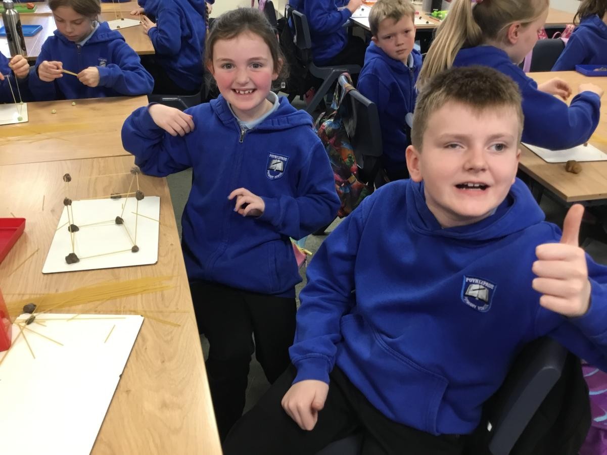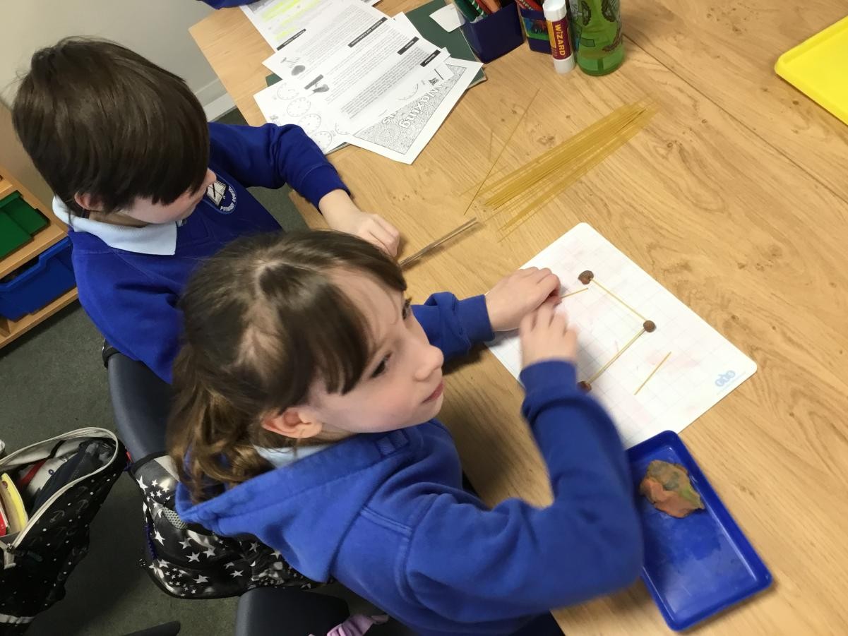 P5/6 have been exploring 3D shapes. We talked about the properties of a range of shapes using words like face, vertices and edges. We then had a go constructing our own 3D shapes with a partner.