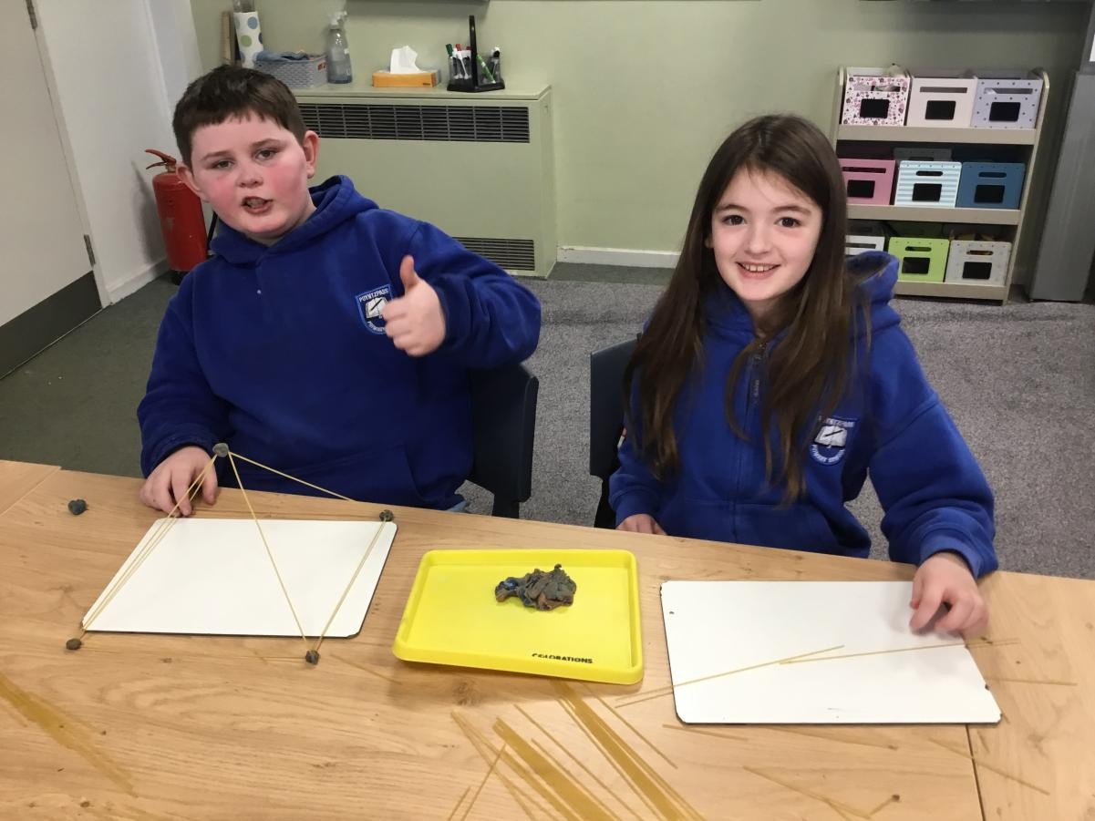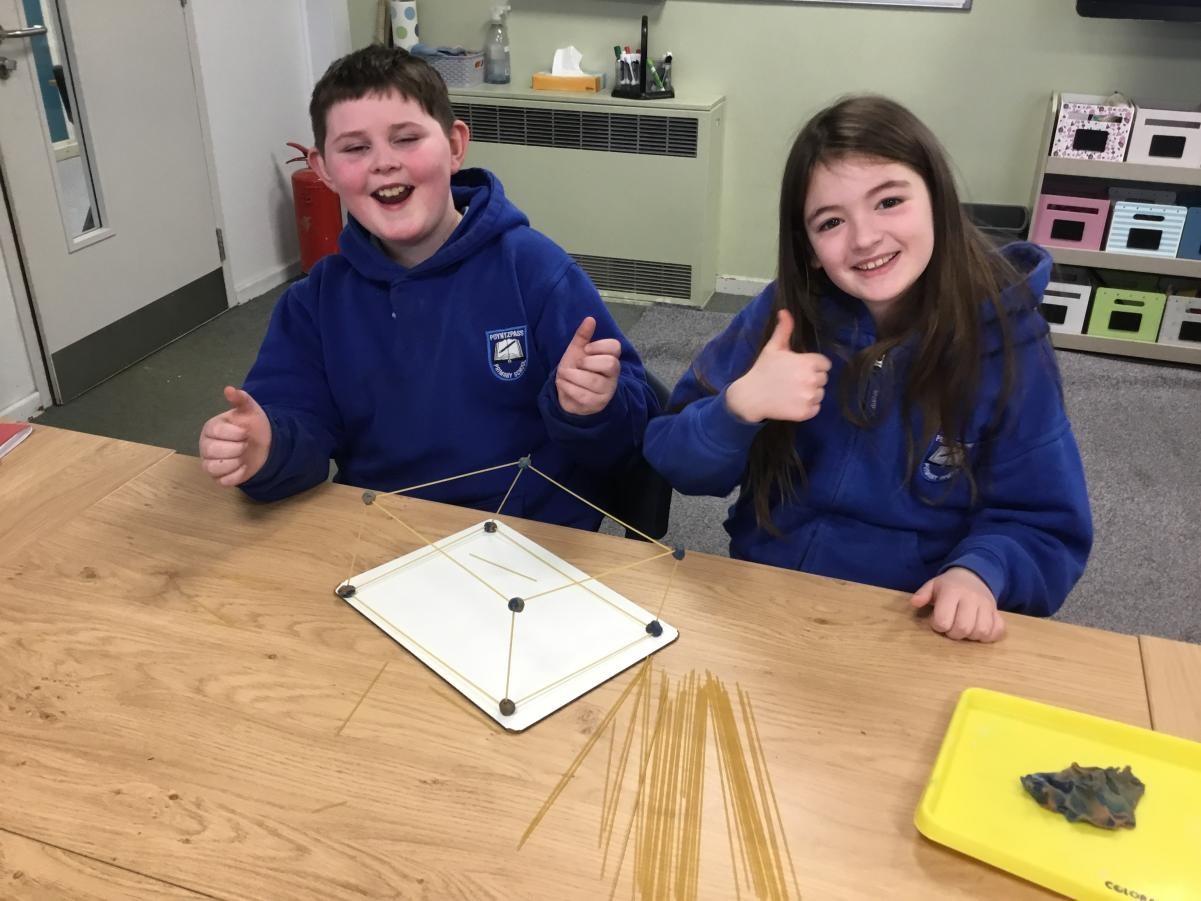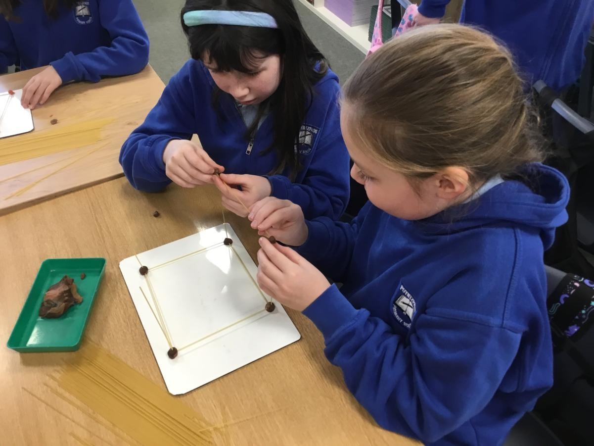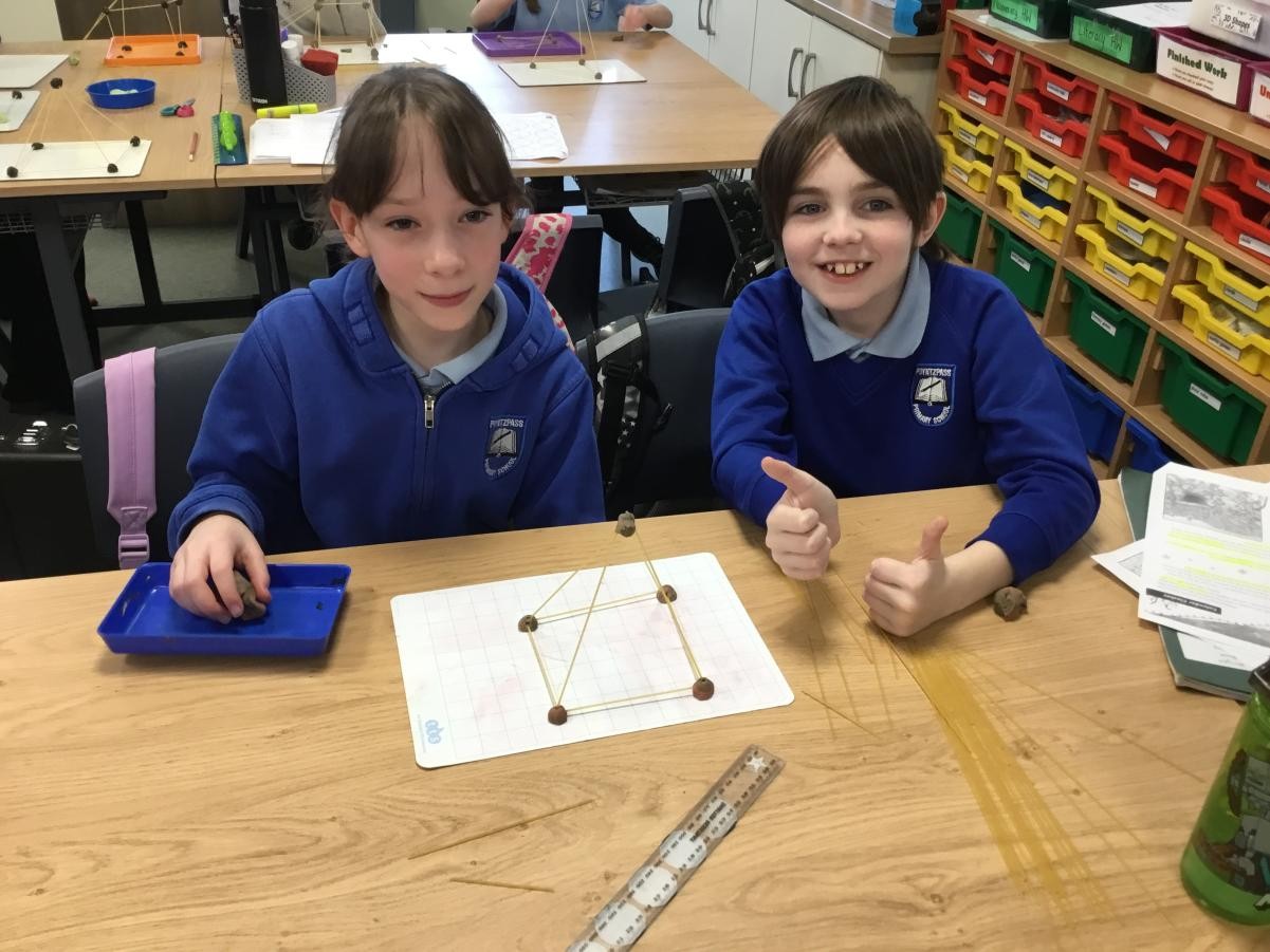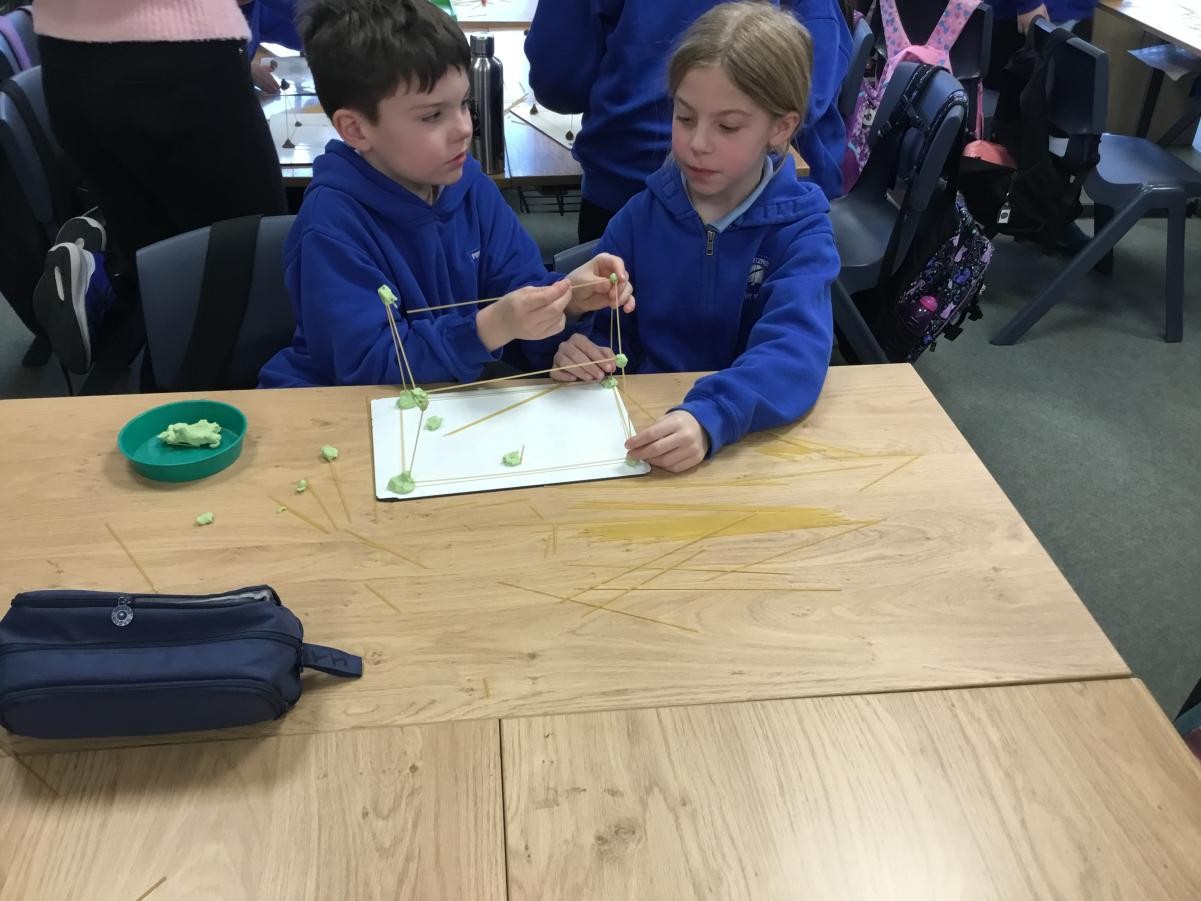 P5/6 have been exploring 3D shapes. We talked about the properties of a range of shapes using words like face, vertices and edges. We then had a go constructing our own 3D shapes with a partner.